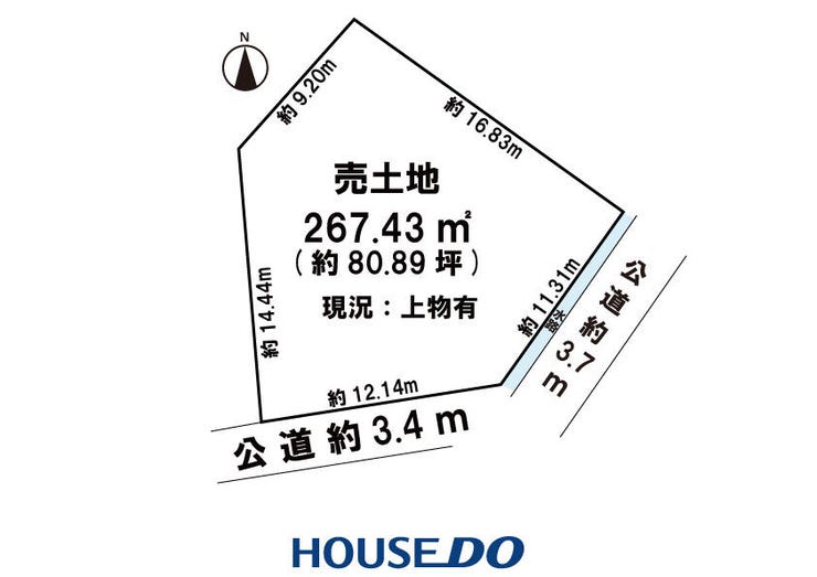 | 土地面積 | 公267.43㎡(80.89坪) | 接道 | 南側(公道)幅 約3.0m 間口 約12.00m |